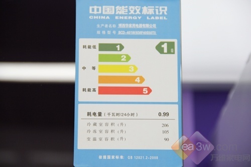 综合参数来看,这款冰箱的日耗电量仅0.92度,达到了国家一级能效水平,对于这样一款大容量冰箱来说,一天不到一度电实属可贵。