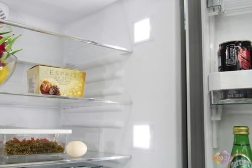 这款西门子冰箱添加了六个节能环保LED灯,将六个LED光源分别嵌入到冷藏室不用角落,使得整个冷藏室照明效果极佳,散射光源相比传统两个主光源更加温和不刺眼,用户在拿取食物方面也会方便自如。