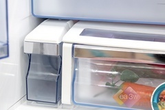 冰箱下半部分为冷冻室,冷冻抽屉采用了双层设计,提供了更多的贮存空间。冰箱抽屉全部采用内嵌式把手设计,符合人体工程学原理,拿取食物更加方便自如。