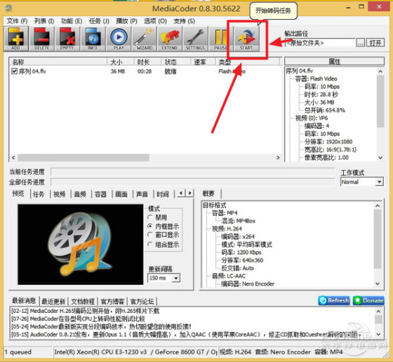 接下来就不多说了,直接看图自己领悟MediaCoder怎么用吧。小编已经将每一步都截图演示,基本上不是傻子都能看懂……