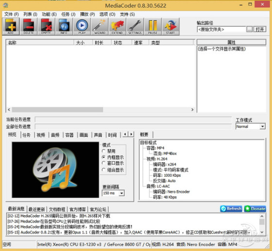 MediaCoder是一个很优秀的视频压缩工具,功能强大!只是MediaCoder界面并非十分友好,第一次用的人可能要研究研发才知道 MediaCoder怎么用。如果MediaCoder能加入更简单的一键选择高中低质量视频格式选择等相关功能,那就更完美了。