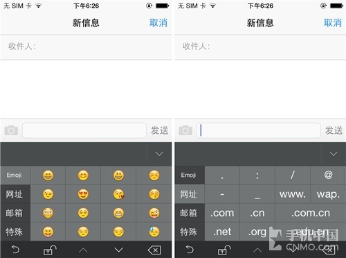 毕竟是测试版,所以有些小问题小毛病就很正常了。首先,由于iOS 8系统的限制,我们在使用时键盘有时候会弹出,有时候则会出现空白的状态。另外输入法键盘整体亮度整体偏低,白天看起来有些困难。还有由于iOS 8 Beta版系统中也有Bug,所以应用退后台后再启动输入法键盘会存在无法收起的现象。与此同时,由于目前iOS 8系统并不支持微信、QQ,所以输入法无法顶起聊天框,此外,在常用的信息界面也会存在无法顶起聊天框的场景。