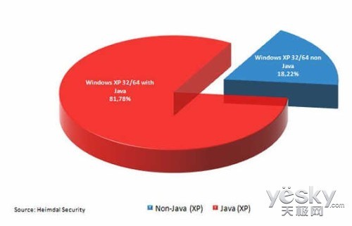 不过IT安全专家认为,Windows XP仍然大范围用于消费者用户、企业市场,其中81.7%的XP平台仍在安装运行Java虚拟开发工具。