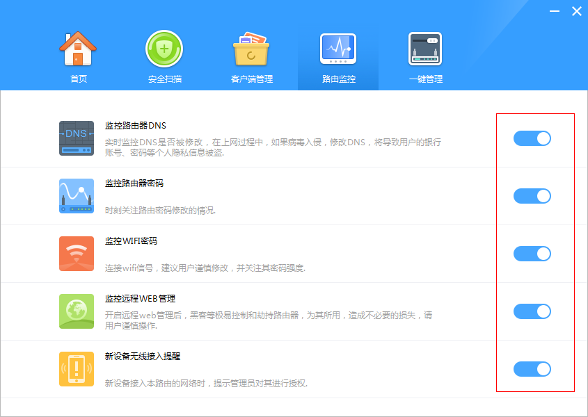 简单总结一下,只要安装了瑞星路由安全卫士,除了上述操作以外,做一做安全扫描、自动修复、打开监控功能,基本上就可以跟黑客攻击、无休止的蹭网说再见了。具体的操作方法,只需要按照提示点一下鼠标就行了。