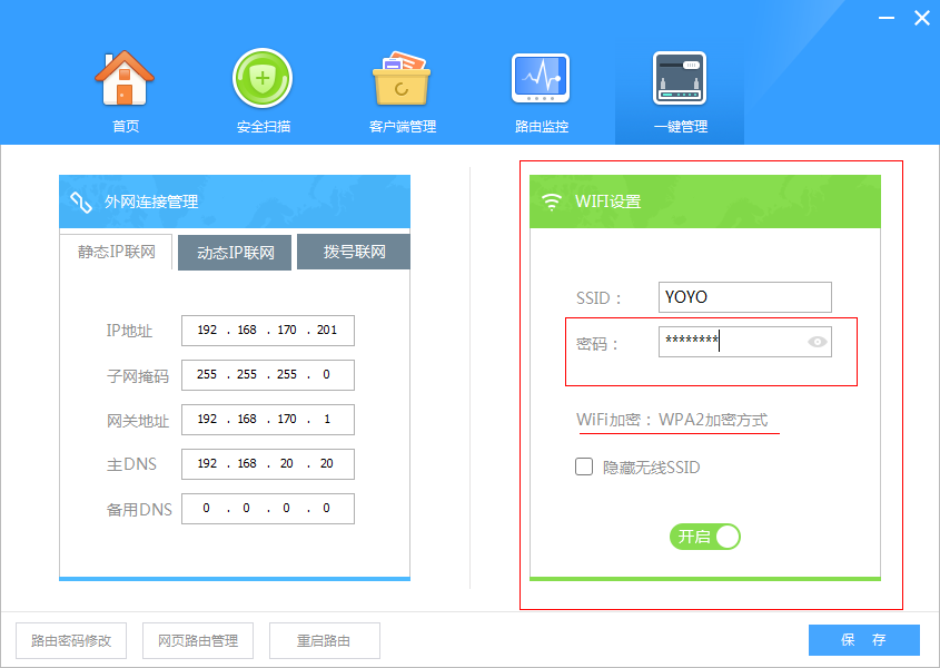 图8:在瑞星路由安全卫士的一键管理功能中,可以轻松简单地为WiFi网络设置复杂密码