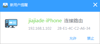 图4:当有新的设备连接WiFi网络时,软件会提示,你可以决定是否允许连入