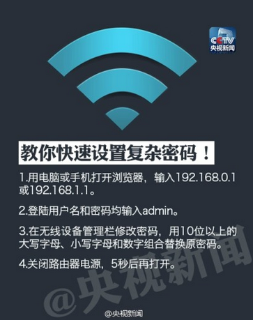 图7:央视微博上关于设置复杂WiFi密码的技巧