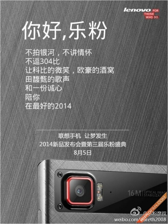 联想官方宣布,将于8月5日晚在京举办新品发布会暨第三届乐粉盛典,届时将发布最新旗舰产品K920。为了回馈乐粉,科比、欧豪、田馥甄三位明星将会出席活动。