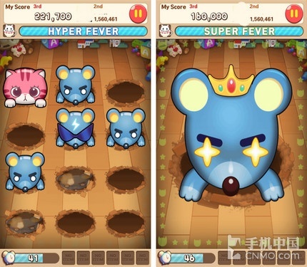 而地鼠砰就是俗称的打地鼠游戏,虽说是地鼠但这造型也太萌了一点,还真是有点下不去手,洞里也会钻出淘气的小猫咪,玩家们可别一时花了眼打了自家人。