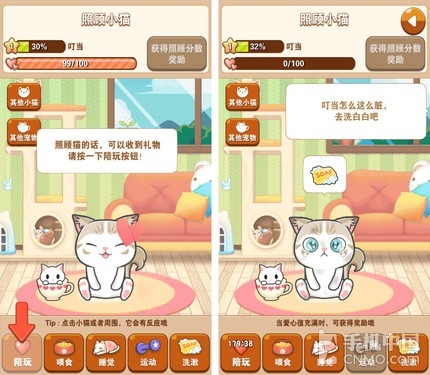 游戏的主人公小猫咪也是可以调戏的哦,每个女孩子都有养猫的梦想,把它养在手机里也是个不错的选择,不用那么麻烦还能随时陪主人玩耍,真是最佳宠物之选,不过玩家也要给它一个干净轻松的成长环境,毕竟这只小猫能带来很多金币奖励。