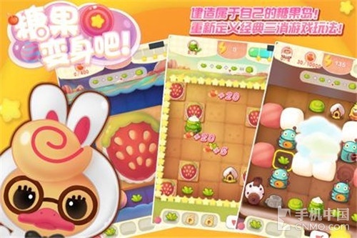 另外《糖果变身吧》这款游戏,整合三消、过关和养成三大玩法于一身,让玩家眼前一亮!该游戏打破了传统的该类游戏无尽合成得分所带来的枯燥,采 用由简至难的关卡制设计,丰富的关卡元素,如:巧克力陷阱、打飞怪物的机器人、破环合成的滚球等新奇物品将不断出现在大家眼前。值得一提的是游戏的一大创 新玩法——道具合成。玩家可以通过不断完成外围世界的建造和升级,搭建各种建筑制造道具;道具则可以帮助玩家顺利通关!