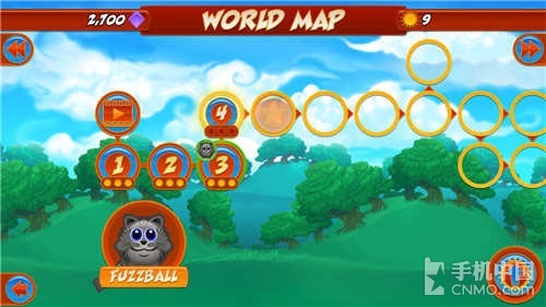 游戏的关卡选择界面设计得十分独特,完完全全摆脱了传统那种仿效“愤鸟”风格的齐整的界面,比较新颖,同时那些小小的图标也是完全不落地把关数 和得分情况一一反馈给玩家。相比传统打弹弓的游戏而言,“爆破喵星人”还加入了角色属性升级系统,让玩家能够更够高自由度的定义游戏,这一点相当难得。