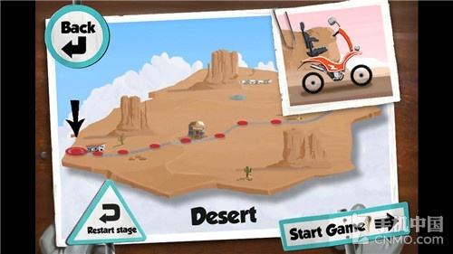 从游戏的画面中可以看出,老奶奶骑着一辆机车带着拉风的安全帽,冲过了坚固的铁门,完全无视身后追赶的人群夺门而出,而她要去的地点需要您来选择,高山还是沙漠完全由你,不同地形还会有不同的机车出现。