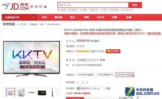 KKTV是康佳旗下的销量不错的一个网络品牌,主打强劲的配置和超值的价格。这里第一个推荐的就是一款49英寸的4K智能电视:KKTV LED49K70U。这款电视采用双重色彩处理技术,高性能八核芯硬件配置,安卓4.2操作系统,有着很全面的功能,也为语音控制的实现提供了强大的技术保障。目前在京东商城中,这款电视价格为3599元,好评后返200劵,感兴趣的读者可以点击进入京东商城购买。