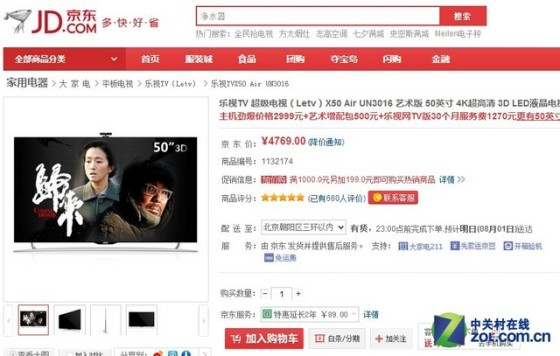 乐视TV X50 Air UN3016艺术版是一款50英寸4K超清画质的智能电视,是乐视TV X50的升级版之一。这款电视有着精美的外观设计,强劲的硬件配置以及简单易用的LetvUI操作系统。另外乐视TV电视所包含的正版资源对于用户来说非常的实用,多屏互动、手势控制、语音操控等智能功也能提供更好的用户体验。目前在京东商城中,这款电视价格为4769元,感兴趣的读者可以点击进入京东商城购买。