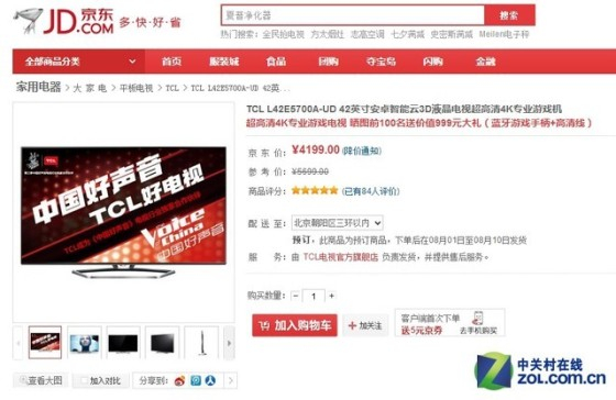 TCL L42E5700A-UD是一款42英寸的4K游戏电视,使用了3M公司生产的最优秀的光学膜,再搭配4K倍清引擎以及4K高速运动处理,有着很高的画面质量。硬件方面,电视使用高频双核处理器、四核GPU,保证了游戏、各种应用和各项功能的强大的动力。与著名游戏商合作提供丰富的优秀游戏的同时这款电视还不忘从语音控制、手势控制和多屏互动来提高他使用中的用户体验。目前在京东商城中,这款电视正在预定当中,价格为4199元,感兴趣的读者可以点击进入京东商城预定。