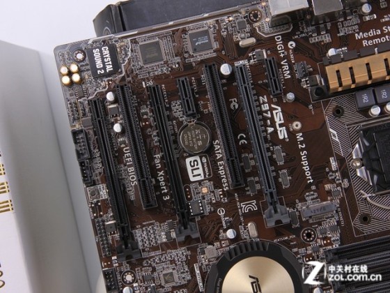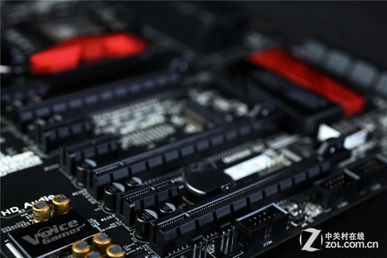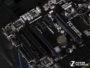 主板的拓展插槽部分齐全,提供了3个PCI-E x16显卡插槽,2个PCI-E x1插槽,2个PCI插槽。除了支持主流游戏玩家配备高规格的独立显卡,多显卡插槽支持最高3路CrossFireX交火以及2路SLI的双卡并联。