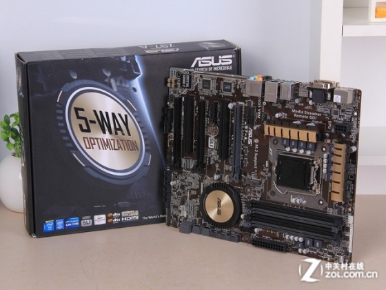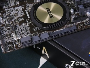 华硕Z97-A采用了ATX标准板型设计,配色方面从上一代Z87 Channel系列的金黄色改成了更加富有金属光泽的感觉,南桥主控核心的散热片更是采用了金属同心圆的独特设计,总的来说该板的外观还是有很大的改变。