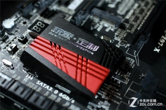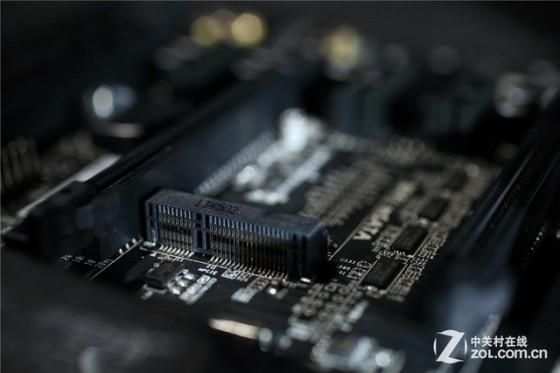另外9系主板的高阶磁盘接口该板也提供很齐全,M.2接口以及SATA Express接口在该板上都有体现,相比SATAIII的6Gb/s理论带宽速 度,两个接口都能达到10Gb/s的速度,从而让固态硬盘的读写速度能够有更多的发挥空间。当然1个SATA Express接口还同时兼容2个SATA 接口,主板共有6个SATAIII接口,对于磁盘阵列的组建也不成问题。