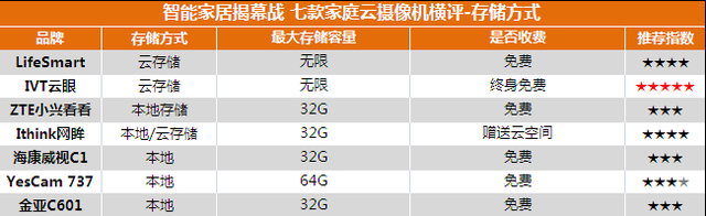 编辑点评:如果从消费者角度选购家庭云摄像机,笔者建议选择小巧型设备,如Ithink、IVT云眼和海康C1,不过这三款设备都不支持云台旋转 ,各有利弊。接口与功能成正比,如果您不需要外接报警器,那么小体积设备足以满足您的需求。
