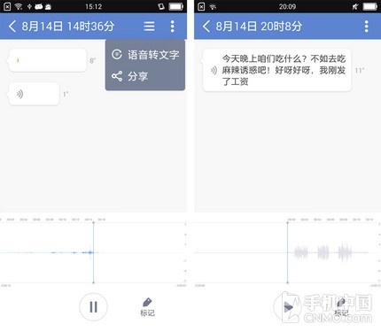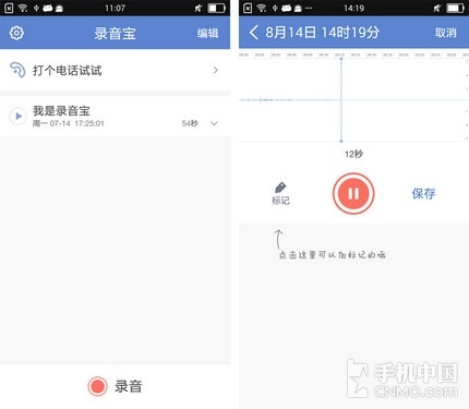 前面说到《录音宝》有两个绝技,这第一个就是标记定位。当我们长时间录制一段音频的时候很难记录下来哪里是重点,只有回去再听一遍从头整理,浪 费时间精力。《录音宝》允许用户在录制的过程当中就将重要内容标注出来,相当于加入了提示书签,只要回放个片段就能了解全部信息。并且,用户还可以写下文 字记录,虽然只能输入30个字,但是足够达到提示的目的了。