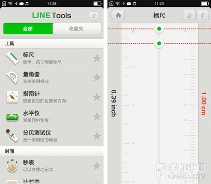 分贝测试仪就显得专业一些了,我们只在电视中看到过,用来测试室内室外噪音。但其实我们也可以利用软件来测量一下周围环境中的噪音分贝,比起专 业测量仪,它的娱乐性更高一些。怎么样?《LINE Tools》中的工具还够实用吧,别看只是简单的尺子、指南针,也是能够派上大用场的。