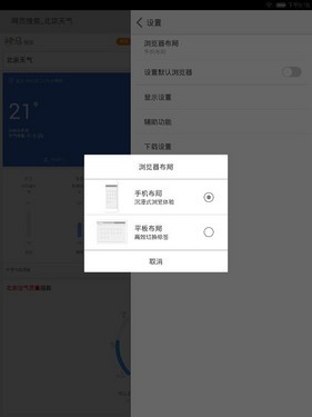 与此同时,UC浏览器HD 3.4还带来了相较以往更加炫酷的交互体验。UC浏览器HD 3.4可以让用户自由选择浏览器布局,在手机布局和平板布局之间自由切换。当切换到手机布局后,UC浏览器HD 3.4就会呈现出其独有的“多窗口界面”,在这个界面中,用户左右滑动屏幕就可以在页面之间流畅的进行多窗口切换,向上滑动即可轻松删除页面。带给用户更 加爽快的操作体验。