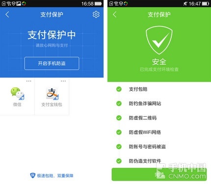 我们日常能接触到的支付工具主要有支付宝钱包、微信支付,以及各类网银客户端,《腾讯手机管家》能够自行在手机中查找,将它们通通列入保护名单 中,用户每次开启之前都会经过仔细严格的扫描,确保安全后才能打开,不用担心会收到弹出的恶意网址,也不用担心黑客会通过“忘记密码”的方式进入账户,这 些都被《腾讯手机管家》拦截在外让您放心网购。