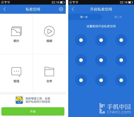 私密空间、软件锁、手机防盗等等都是我们对隐私的一种保护,开启这些功能相当于将手机中的照片、视频、文件放进了保险箱,防范偷窥狂有时候就这么简 单!手机丢了也许找回的概率并不大,但是重要文件被窃取却会造成巨大的损失,开启“手机防盗”,在手机丢失时远程清空数据,绝不能让它们被别有用心的人所 利用。