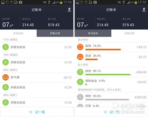 接下来咱们再来说说“记账”功能。每个月底看着空空如也的钱包,怎么也想不明白辛辛苦苦挣来的工资到底都花在哪了。最简单的方法就是在手机中安 装一款记账软件,将每一笔收入支出记录下来,但是这样做有个缺点就是太麻烦。自从安装了支付宝钱包,很多现金消费全部转为用手机付款,将每个月的收入和支 出记录在这里不就简单多了么。
