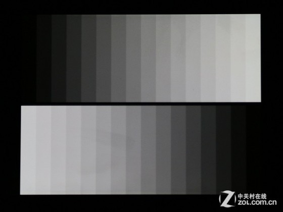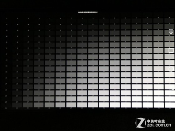 华为Mate 7的亮度对比度测试部分表现很好,黑白很鲜明,而且逐层的过渡也很清晰。这也就意味着我们在观看屏幕时,图像更加清晰,色彩层次更丰富。灰阶渐变部分同样是对比度越高,图中每个方块的层次就越分明。