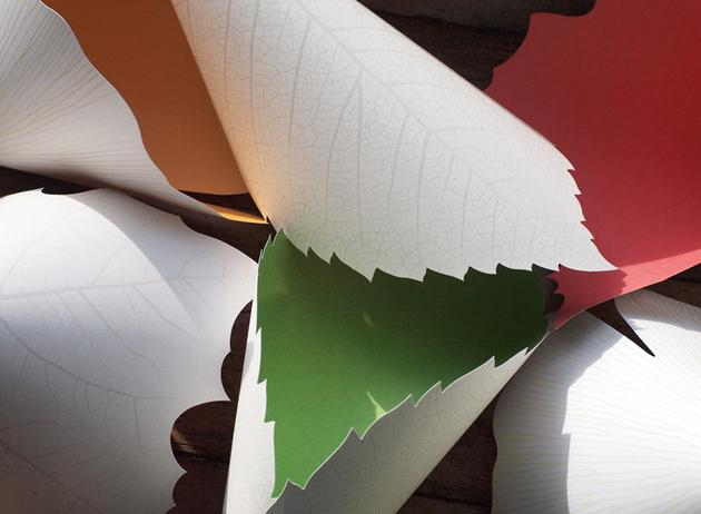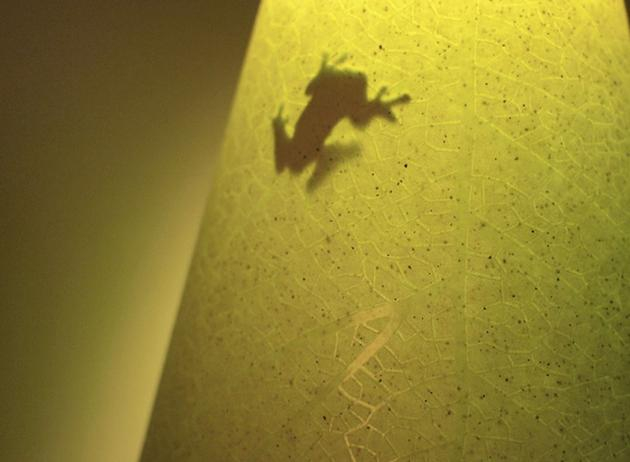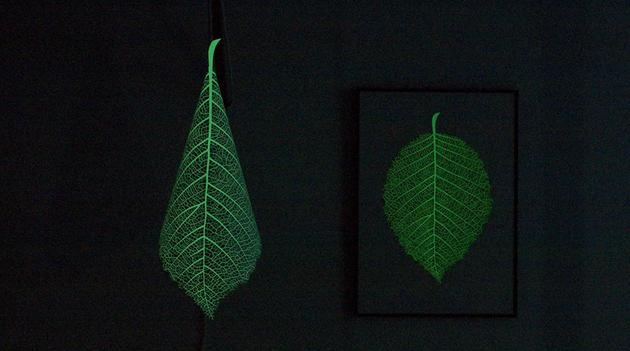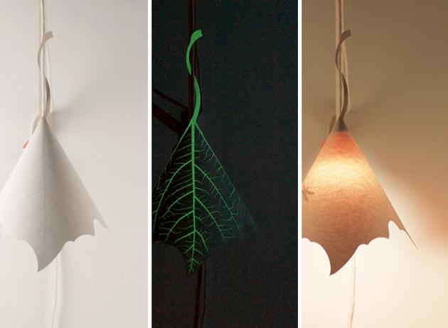 这款名为SOULeaf的树叶灯,由韩国ilsangisang工作室设计,采用环保纸张制作,用丝网印刷精巧细致的印上了树叶的叶脉,并在灯罩上印做了凹凸有致的夜光纹理。即使不点亮灯泡,到了晚上,纸张上印刷的夜光油墨剪影和树叶纹路就会以萤光的方式显现出来。