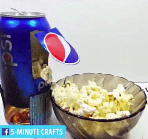 拿一个碗放在可乐瓶的缺口前,然后就等着爆米花一个一个跳出来吧。