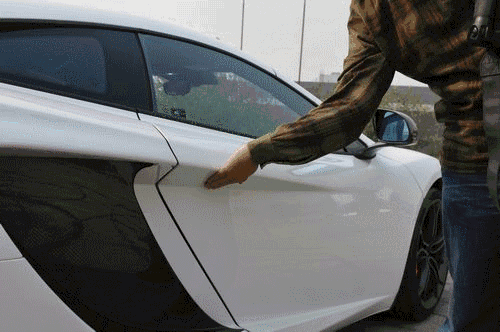 这也正是迈凯伦的高明之处,看到车窗下的那个凹槽了吗?当然设计之初它还是为了最优化的车身空气动力学而生,但迈凯伦还在这里加入了一套感应装置,只需要用手轻轻拂过,车门便会自行向上掀开。