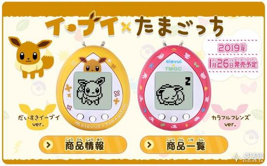 Tamagochi日本官网称伊布宠物蛋预计将在2019年1月26日上市,有黄色和红色两个不同主题可选,官方建议售价2300日元。你问我纠不纠结这个,我其实更纠结今年应该买Switch还是PS4……