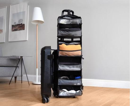这款旅行箱的神器之处就在于它的外观看起来是个普通的登机箱,但是实际上,打开这款旅行箱你就会发现它是一个移动的衣架。