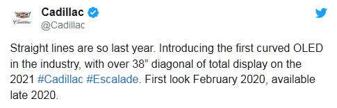 传统汽车行业最大 新凯迪拉克将配38寸OLED屏