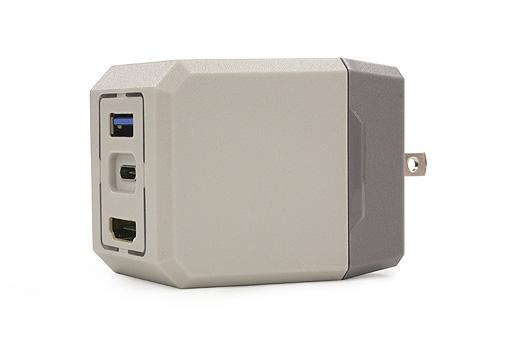 显而易见,这款第三方便携型主机底座仅有插头大小,同时保留了底座所有的功能和三大主要功能接口。插座造型设计的背部依次配备有USB 3.0、Type-C和HDMI接口,分别用于连接手柄、主机以及显示器,可以说使用起来和原装底座没差。