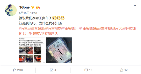近日,有网友在微博上曝出,王思聪卖出了个人手中两台超跑,分别是保时捷918 Spyder和兰博基尼Aventador LP 700-4。目前这两台车子已经流向了二手市场。