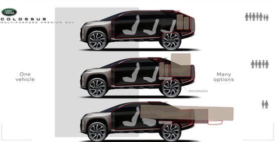 近日,有海外媒体曝光了一组路虎全新概念车型。新车命名为Land Rover Colossus,定位于多功能车型,能够实现SUV和皮卡车两种车身造型。