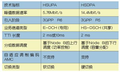 表1 HSUPA与HSDPA技术指标对比