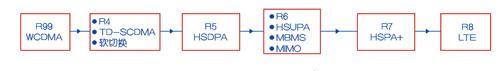 随着用户对大流量移动多媒体服务需求的日益提高,3GPP组织制定了相应的技术演进路线,在Release5中引入了高速下行分组接入(HSDPA,HighSpeed Downlink Packet Access),在Release6中引入了高速上行分组接入(HSUPA,High Speed Uplink Packet Access),Release7中采用了OFDM和MIMO技术完成HSDPA和HSUPA的未来演进道路HSPA+。