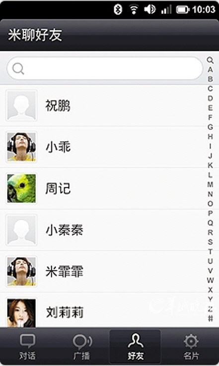 米聊是一款手机端免费即时通信工具,可以通过网络进行无限量的免费的实时语音对讲,或者信息沟通和手法图片。耗费流量较少。目前支持iPhone、Android、Symbian手机平台,横跨移动、联通、电信三大运营商。