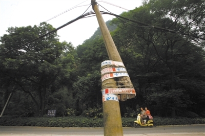 中电信客服称“胶布捆绑电线杆”在桂林公园