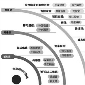 “物联网并不是一个行业,它是个大框,只要符合这个逻辑架构的,都可以装进去,这就涵盖了电子、计算机、通信等行业。”一位北京券商分析师表示。