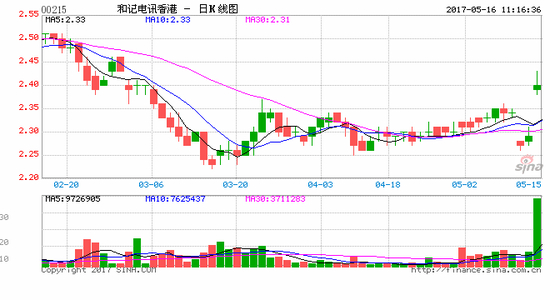 快讯:和记电讯跳空高开现升5% 或出售香港固网服务