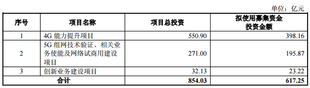 本次非公开发行预计募集资金总额不超过人民币 617.25 亿元,在扣除相关发行费用后的募集资金净额,将以依法合规且取得中国联合网络通信(香港)股份有限公司(以下简称“联通红筹公司”)董事会或股东大会同意的方式投入中国联合网络通信有限公司(以下简称“联通运营公司”),最终由联通运营公司用于“4G 能力提升”,“5G 组网技术验证、相关业务使能及网络试商用建设项目”和“创新业务建设项目”。