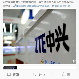 近日美国商务部发出技术禁令,在7年时间里,中兴或将无法获得美国公司的技术。有消息称,这意味着中兴可能无法在其设备中使用谷歌开发的Android手机操作系统。中兴方面回应称,尚在核实事件的真伪,目前处于信息不对称的状态,需要对整体事件评估后才能清楚对公司的具体影响,再去讨论是否有新的系统取代Android软件。