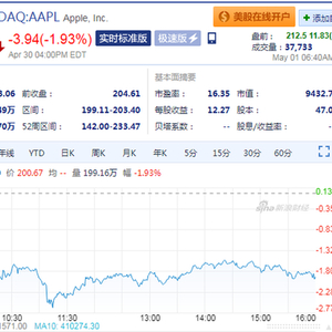 新浪科技讯 北京时间5月1日消息,截止北京时间18:40,苹果盘前涨幅扩大至5.9%,报212.5美元,市值时隔6个月重回万亿美元 。