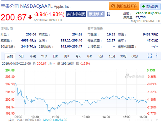 苹果盘前涨幅扩大至5.9% 市值时隔6个月重回万亿美元